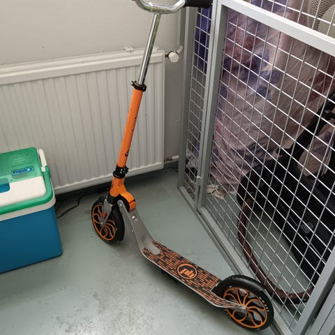 Potkulauta jäänyt pois käytöstä pojalta. Toimiva, mutta kädensijakumit kuluneet.