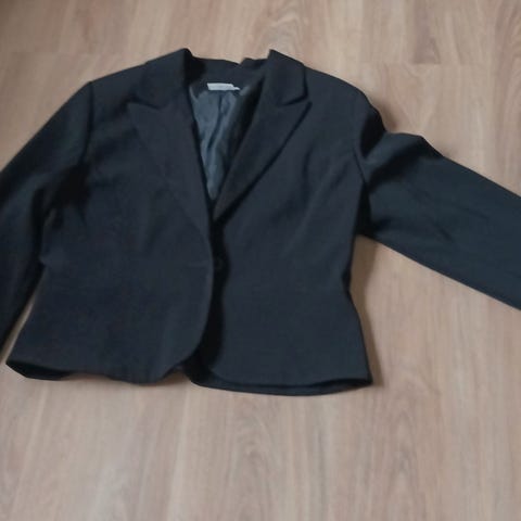 Raidallinen jakku kokoa 42. Tukevaa, mutta pehmeää kangasta (75 % polyesteri, 21 % viskoosi, 4 % elastaani). Edessä kaksi nappia. Ei ole päätynyt käyttöön.