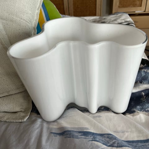 Wellamo maljakko 1970 luvulta, suunnittelija Valto Kokko. Suurempi koko, kork. 21,5 cm. Suun halk. 9 cm. Ehjä, siisti maljakko. Iittala tarra paikoillaan. Nouto tai postitus 8,90€