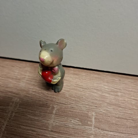 Hassu keltainen hiirifiguuri. Tarkoitettu ilmeisesti alun perin Barbie- nuken kissalle. Käyttämätön ja erittäin hyväkuntoinen.