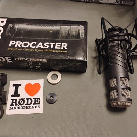 Rode procaster mikrofoni + shockmount teline ja pop-filter.