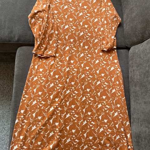 Siro mekko jossa päällikagas ohutta monisävyistä beigeä ja alla vaalea sileä miellyttävä alusmekko. Kaula-aukon ympärillä röyhelöä ja vyötäröllä mekkokangasta oleva vyö. Nouto tai posti/matkahuolto/ärräpaketti.