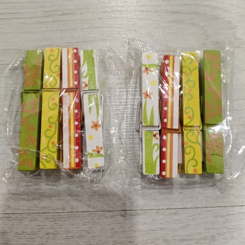 Pieniä puisia koristepyykkipoikia, jossa valkoinen sydän. 15 kpl setti yht. 2e. Korkeus n 3cm.