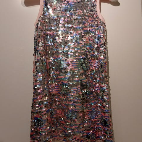 Kerran pidetty next kaunis paljettimekko. Koko 140/10 v. Reilunkokoinen. Nouto/lähetys +6.90