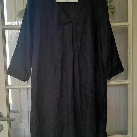Kuvan musta pellava puuvilla mekko. Tuoteseloste kuvassa.