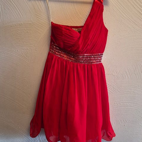 Myydään viininpunainen valmistujaismekko, joka aikanaan ostettu juhlapukuliikkeestä. Ovh 80e. Edessä rusetti ja rintamuksessa luut, pitämässä mekko "ojennuksessa". Takana nyörit, joiden avulla mekon kokoa saa säädettyä. Koko M-L.