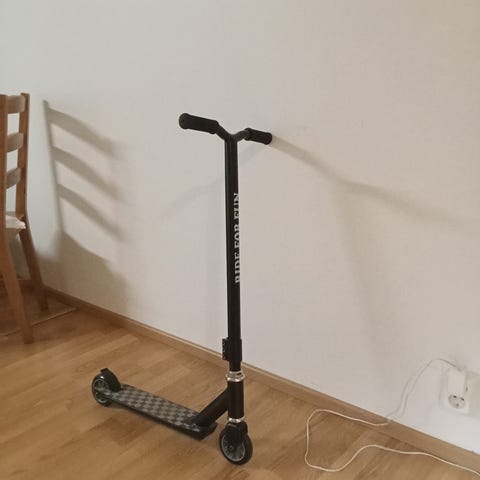 Vähän niinkun potkulauta mutta tässä ideana on heilutellä itseään eteenpäin. Kädellä käytettävä jarru.