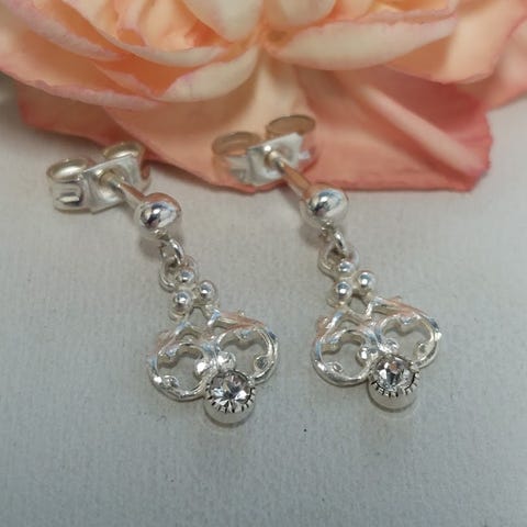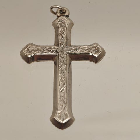 830 hopeinen vintage ristiriipus kirkkaalla kivellä