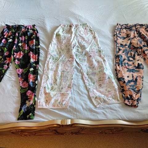 - Ciraf ruusukuvioidut collarilegginsit, koko 140. 2 takataskua. Uudenveroiset