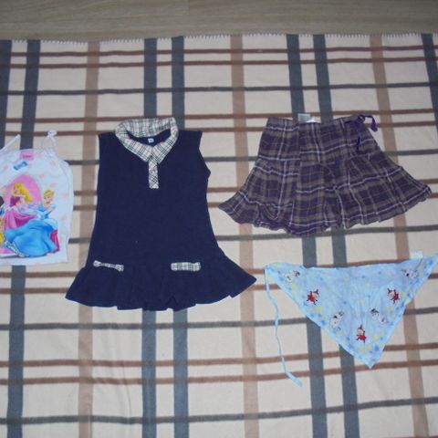 Kuvannäköinen käytössä ollut vaatepaketti, vaatteet pesty, mutta nyt ollut säilytyksessä. Osa vaatteista ryppyisiä, osa nimikoitu. Vaatteissa voi olla nukkaa ja värikulumaa, muun ilmoitan jos huomaan, en ota vastuuta jos jotain jää huomaamatta.