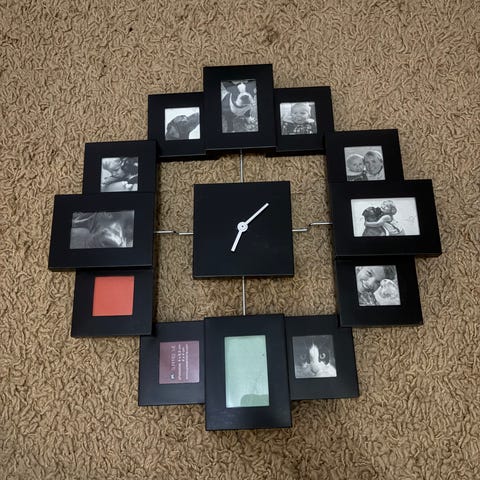 Leveys 28cm, korkeus 19cm. Kello toimii sormiparistolla ( ei mukana)