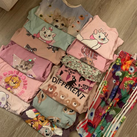 - Littlest pet shop huppari koko 104/110, vasemman puolen alhaalla musta tahra. Seppälä paita koko 104/110 koko näkyy haalealla. Kids M.O.S tunikatoppi koko 104/110. Palomino yöpuvut x 2 molemmat koko 104/110, molempien housuissa on tahra ja toisessa housuissa on pieni reikä.