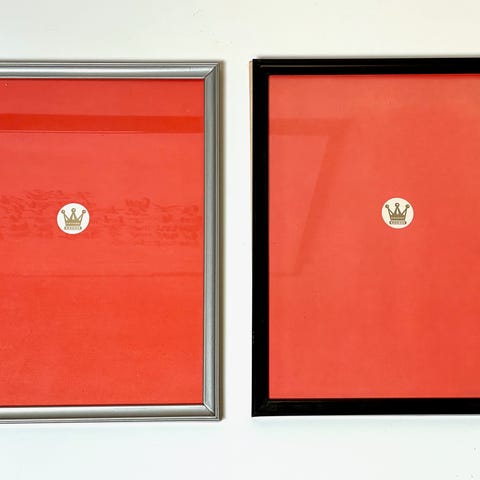 2 kpl vähän leveämmällä kultareunuksella, 1 kpl kapeammalla ja kehyksen väri tummempi ruskea.