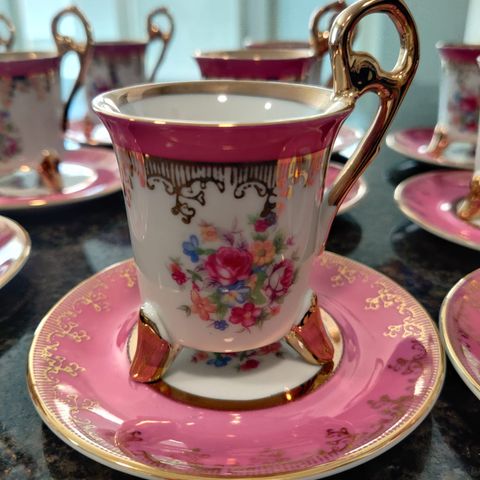 Pienet keltakukkaiset mokka kupit tasseineen 4 kpl