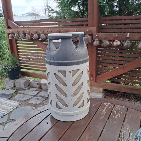 Komposiittikaasupullo 10 kg, jossa kaasua n. 2 kg on myynnissä.