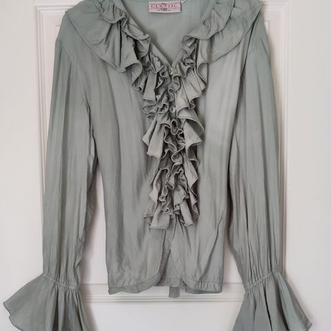 Valkea paita röyhelöillä.Napitus.Koko M.Hinta 4€+ lähetys.