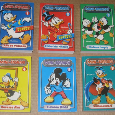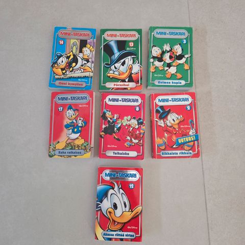 Myydään 14 minitaskaria, numerot 1 ja 4-16. Kirjat luettuja, mutta hyväkuntoisia. Myydään kaikki kerralla. Mieluiten nouto ja käteiskauppa, mutta käy myös postitus postikuluineen. Maksu käteisellä, tilisiirrolla tai mobilepay.