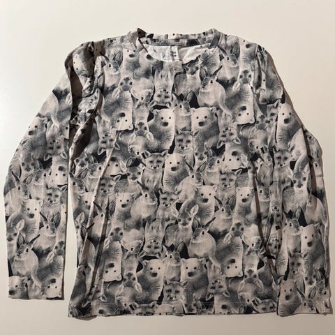 Myydään Småfolkin tiikerikuvioinen pitkähihainen paita. Laadukas kangas, joka on pehmeää, joustavaa ja hyvin laskeutuvaa. Materiaali puuvillan, modaalin ja elastaanin sekoite. Koko 122/128 cm.