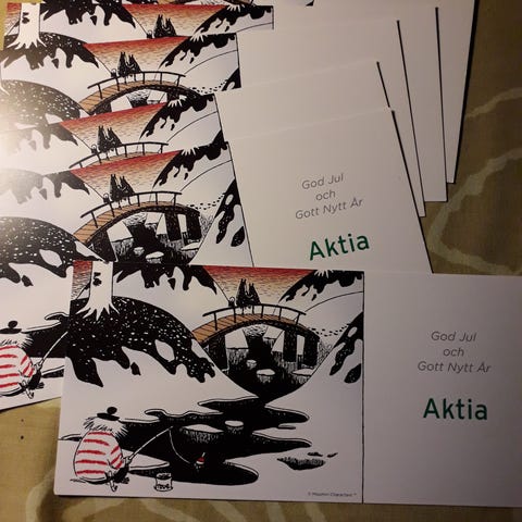 6st God Jul och Gott Nytt År kort .Moomin Characters.Vita