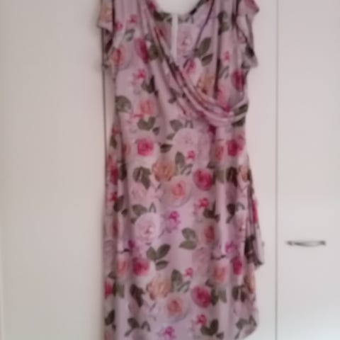 Kauniit ylhäältä auki olevat hihat, jotka jättävät olkavarret näkyviin. Hehkuvat värit kukissa. Vuoritettu ja vetoketju selässä, materiaali laskeutuvaa keinokuitua.