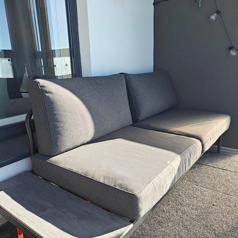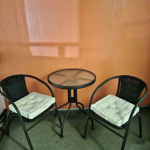 En mittaile, kuvien puutarhatuolin levyinen ja takapuolen kokoinen, käy myös istuinalustaksi