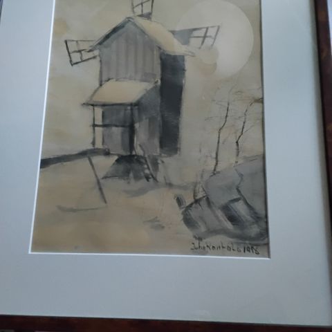 Mikael Stanowsky talvimaisema-akvarelli 1921, signeerattu & kehystetty