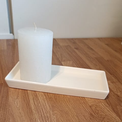 Myydään uusi Finnmarin kynttilä ja lasinen tarjotin/ alusta. Valmis esimerkiksi lahjaksi annettavaksi.