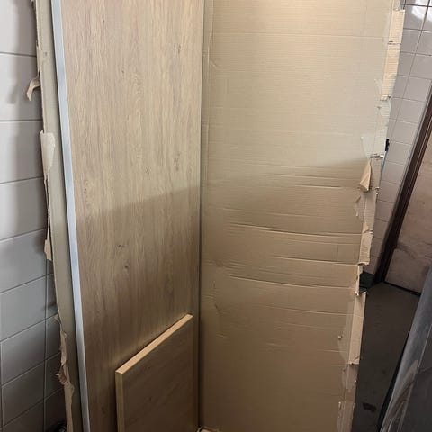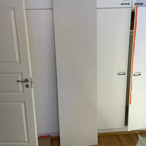 Ylimääräiseksi jäänyttä mittatilausvälitilalevyä, laminaatti. Helppo työstää haluttuun mittaan!