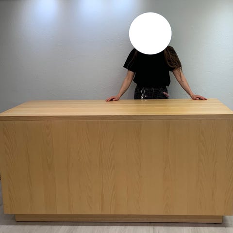 Rakentuu moduuleista, joissa pyörät alla. Tiskitason kulman saa kolmeen eri asentoon. Paikat kassakoneelle ja vaa'alle, apupöydät, runsaasti varastotilaa. Siistit laarit, suojapleksit tiskin etuosaan. Myynti tilaan käynti suljettavasta portista, josta mahtuu rullakko sisään.