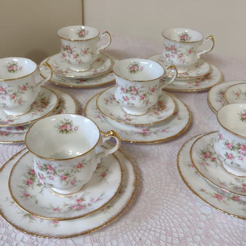 12 kpl setti. Hyvä kunto mutta yhdessä kupissa halkeama. Vain käsin tiskattu.