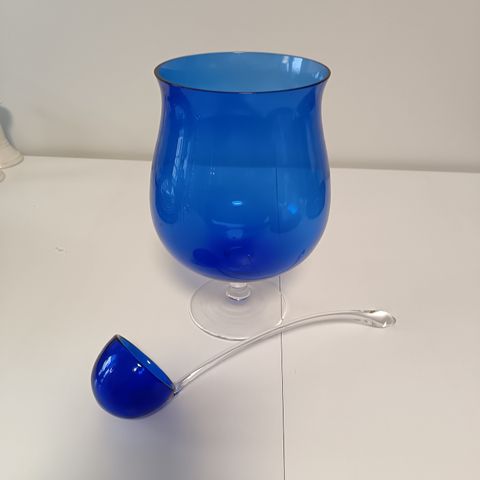 Sininen hyväkuntoinen malja jonka on suunnitellut Sirkku Kumela-Lehtonen. Maljan korkeus n. 23 cm, suuaukon halkaisija n. 12 cm. Hinta 18e. Nouto tai postitus.