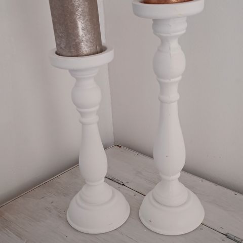 Peltinen kynttilänjalka. Pituus 47 cm ja leveys 15 cm. Vain nouto.