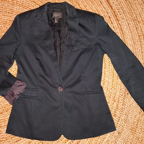 Mango Suit jakku, bleiseri. Koko 34. Tummansini-valkoraidallinen. Vuori tummansininen. Erittäin siisti ja hyväkuntoinen. Liki aivan kuin uusi.