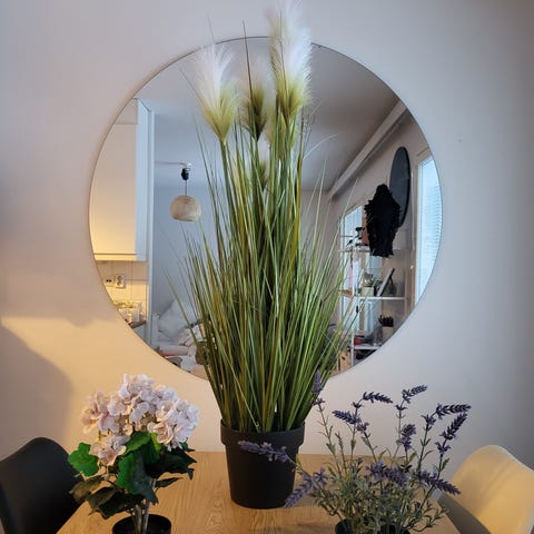 Koristeellinen punainen tekokasvi, valmistettu muovista. Sopii sisustuselementiksi erilaisiin tiloihin, kuten olohuoneeseen tai toimistoon. Helppohoitoinen ja kestävä vaihtoehto luonnollisille kasveille.