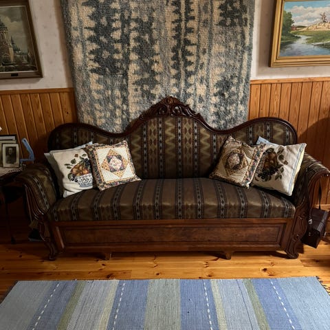 Antiikkisohva, 2 tuolia ja vihkipalli