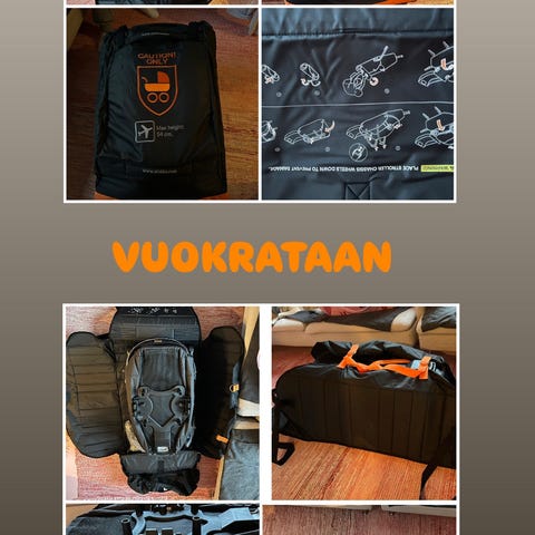 Vuokrataan Stokken Prampack -kuljetuskassi lastenvaunuille, rattaille ja turvaistuimille.