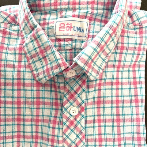 Hieno Japanissa valmistettu puuvillainen kesäpaita. Kankaassa on samanvärisellä langalla kirjailtu kukkakuosi. Käytetty kerran ja todettu itselle hieman liian pieneksi (olen 177 cm ja 74 kg). Paidan mitat: kainalo-kainalo 55 cm, selän pituus kauluksen alaosasta 68 cm.