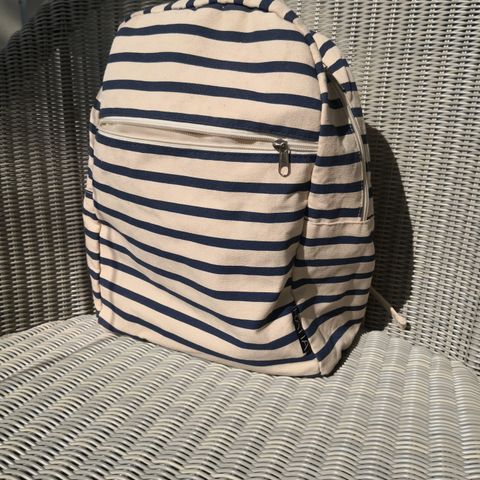 Uusi Ratia kangasreppu luonnonvalkoisella pohjalla tummasinisiä raitoja