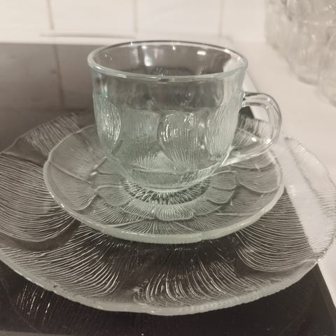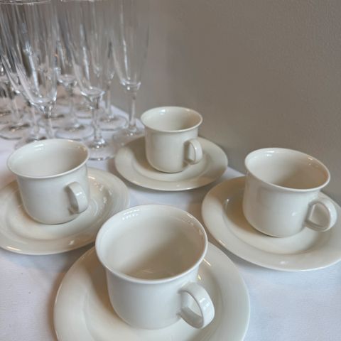 Kahvikuppi + asetti + kakkulautanen + lusikka: 40 kpl, 1 eur/setti