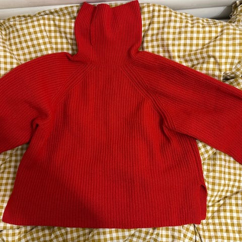 marjapuuron punainen neulepusero puuvilla-polyesteria