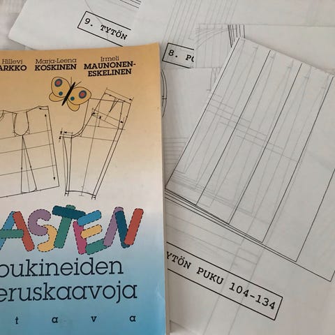 Lasten vaatekäsityökirja (96 sivua): Kaisu Isola - Marja-Liisa Niemisalo, Otava 1987. Kirja on uuden näköinen, kaavaliitteessä (kuva 2) olevaa kahvikupin jälkeä lukuun ottamatta.