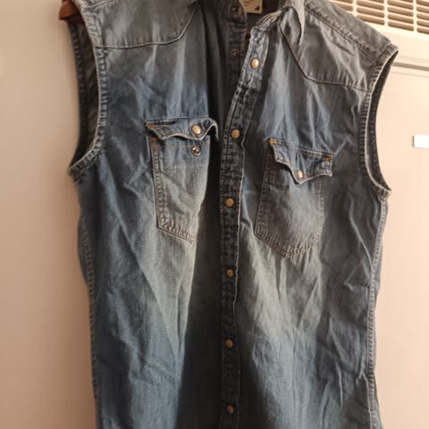 Ruudullisesta kankaasta ommeltu kangasliivi, reunukset kantattu,koko ehkä M/L