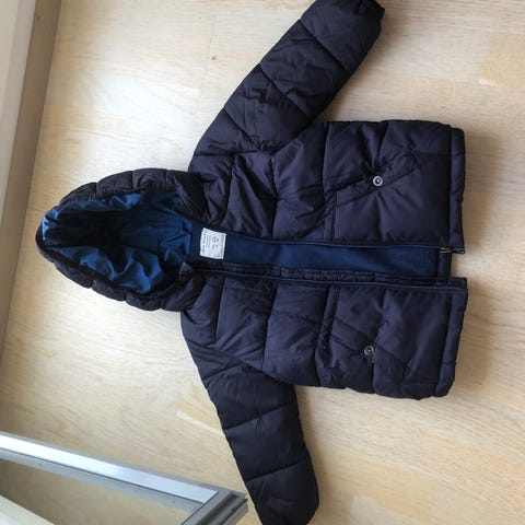 Zara tummanruskea lämmin talvitakki, koko 98. Taskut sivulla. Huppu irroitettavissa neppareilla. Siisti käytetty kunto.