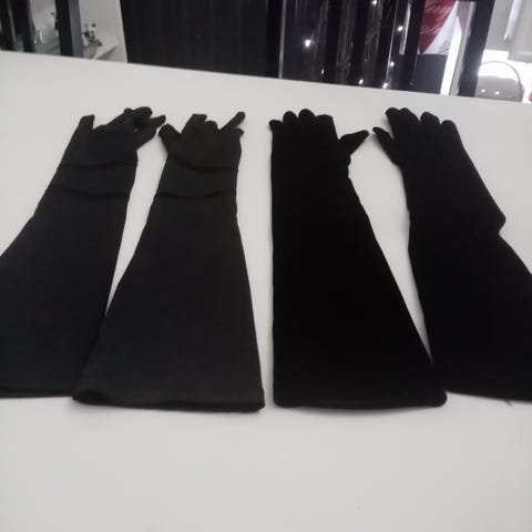 Mustat pitkät käsineet, vähän käytön jälkiä.