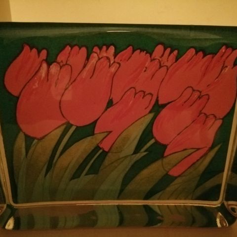 Iittalan Heljä Liukko-Sundströmin iso lasikortti Tulppaanit, koko 15x12 cm