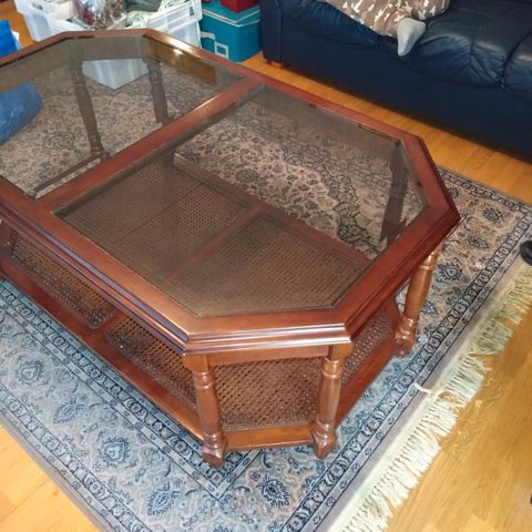 Myydään vanha sohvapöytä lasikannella. Siisti kunto.