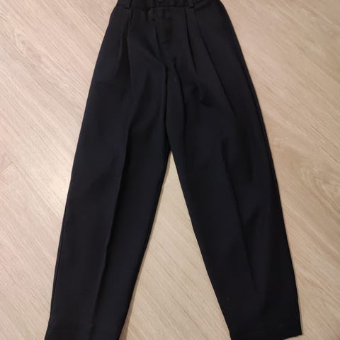 Juhlahousut, vähän käytetty. Koko D120. Säädettävä kuminauha vyötäröllä.