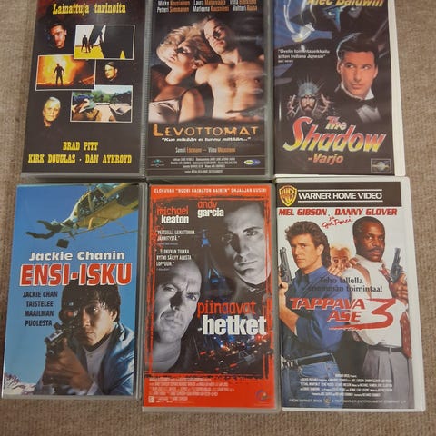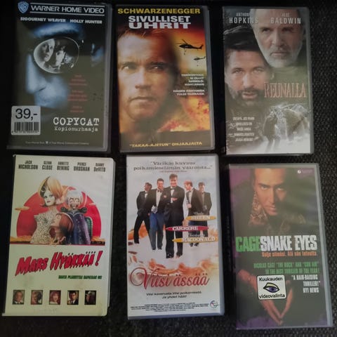 Myydään kuvan VHS elokuvat. Ovat hyvässä kunnossa. Hinta 1 e kpl tai kaikki kerralla 4e.