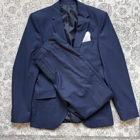 Miesten hyväkuntoinen harmaa Selected slimfit puku, koko 44, käytetty vain muutamia kertoja. Puku ollut n. 161cm pitkällä henkilöllä.