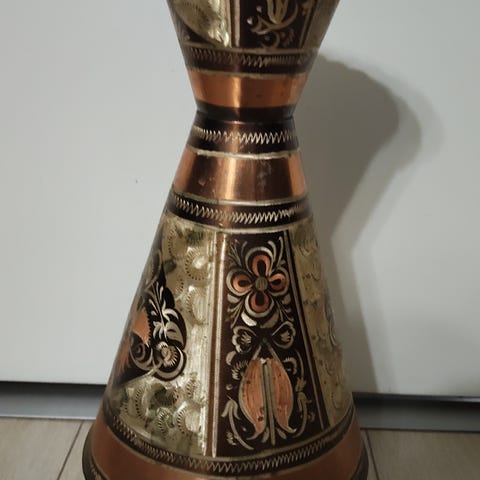 Kaunis, priimakuntoinen peltiruukku kahdella erillisellä kipolla, kokonaispituus 19,5 cm ja leveys 10,5 cm, 6 e + mahdolliset postikulut